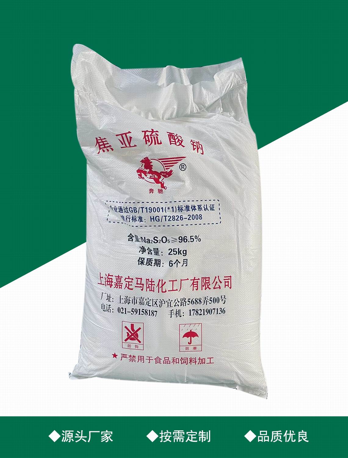 Shanghai Jiading Malu Chemical Factory Co., Ltd. is mainly engaged in: sodium metabisulfite, sodium bisulfite and other products. The company has a complete and scientific quality management system. We can provide solutions for various purposes of the product according to the customized needs of the product. The company attaches great importance to reputation, abides by contracts, guarantees quality, and delivers delivery. We have professional pre-sale, in-sale and after-sale teams to ....